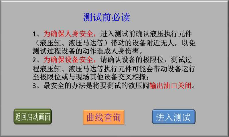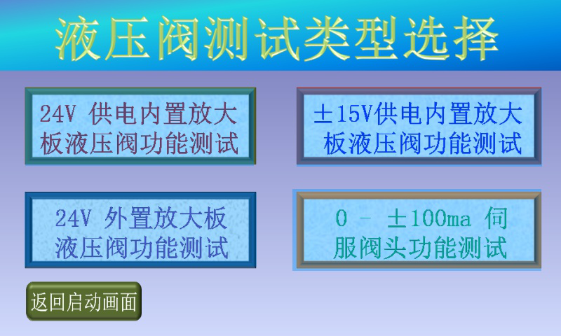 3、確認現場人員和設備安全后,點擊“進入測試”,進入液壓閥測試類型選擇畫面;